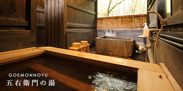 自由に入れる3か所の貸切風呂内風呂と露天風呂とそれぞれ札をかけ、内鍵をかけてご利用ください