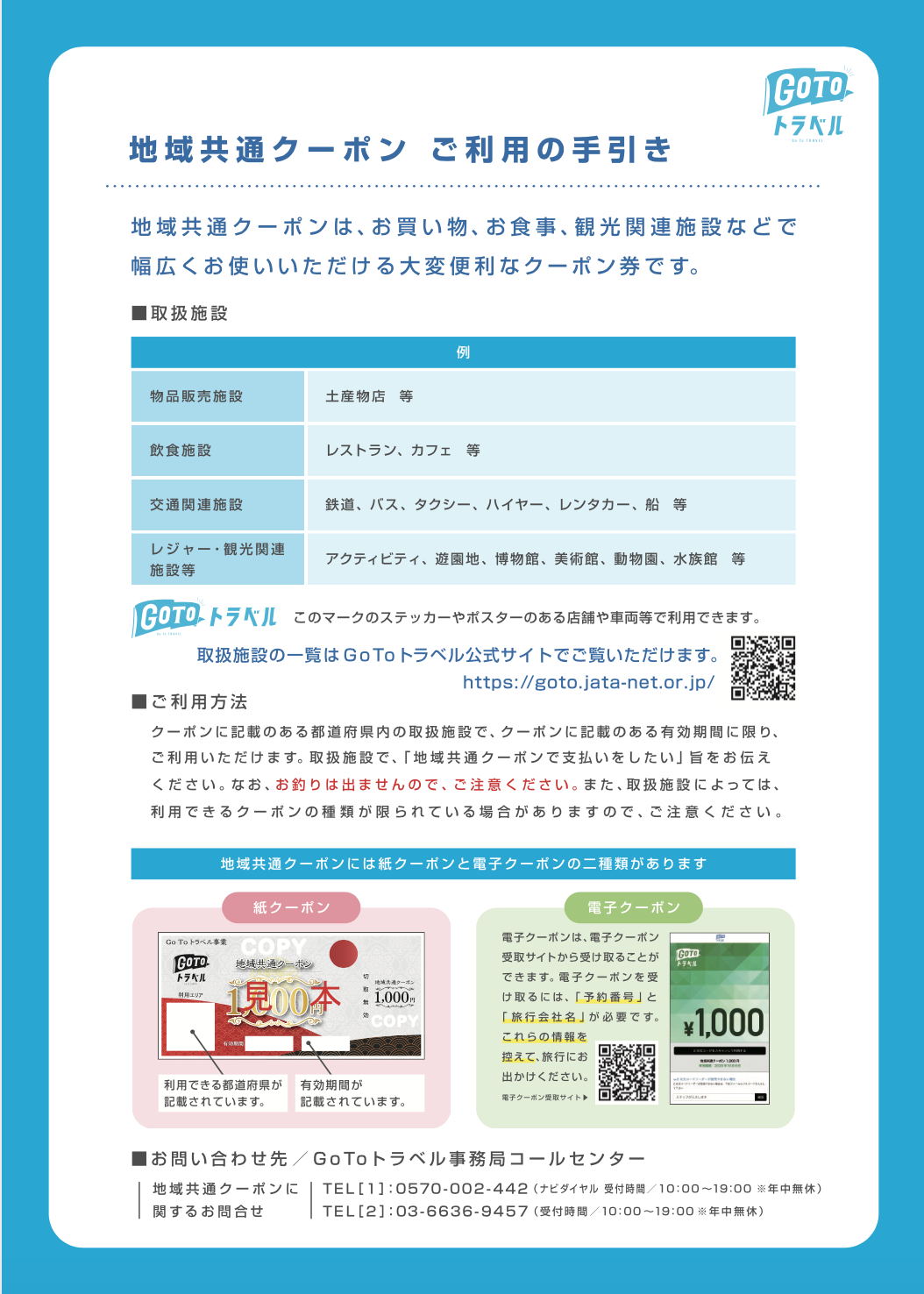 お買い物やお食事、観光関連施設などでお使いいただけるとてもお得なクーポン券です。